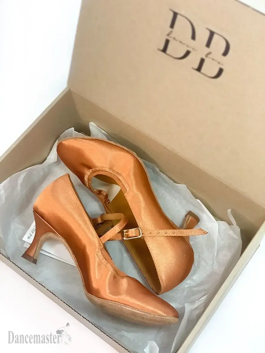 В танцевальном боксе "Dance Box" мы с заботой собрали для вас обувь от популярного российского производителя Dancemaster ( Дансмастер ), отвечающую всем установленным требованиям. Танцевальные туфли для бальных танцев, лодочки для женского стандарта, обеспечивают максимально комфортную, безопасную работу стопы танцовщика. Натуральная спилковая кожа способствует хорошей гибкости подошвы и надежное сцепление с паркетом, позволяет гармонично выполнять перенос тела. Устойчивый клеш-каблук 5 см идеален для начинающих танцоров, а также для тех, кто собирается танцевать много часов подряд. Дополнительная фиксация стопы регулируется ремешками с качественной фурнитурой. Данная модель полностью выполнена из натуральных материалов (кожи). Верх обуви - сатин. Сатин переливается, что особенно смотрится эффектно во время движения танцора. Достигай побед! Модель имеет резинку по вырезу, что создает натянутую линию канта и обеспечивает плотное прилегание к ноге во время эксплуатации. Средняя полнота. Начни прямо сейчас!