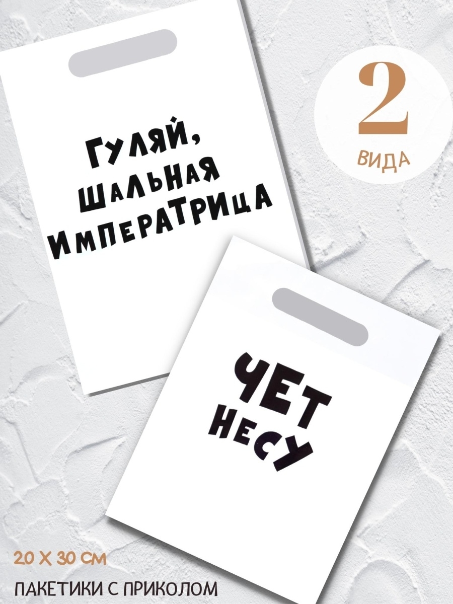Пакет с приколами, полиэтиленовый с вырубной ручкой - 2 вида, 20 х 30 см, 35 мкм.