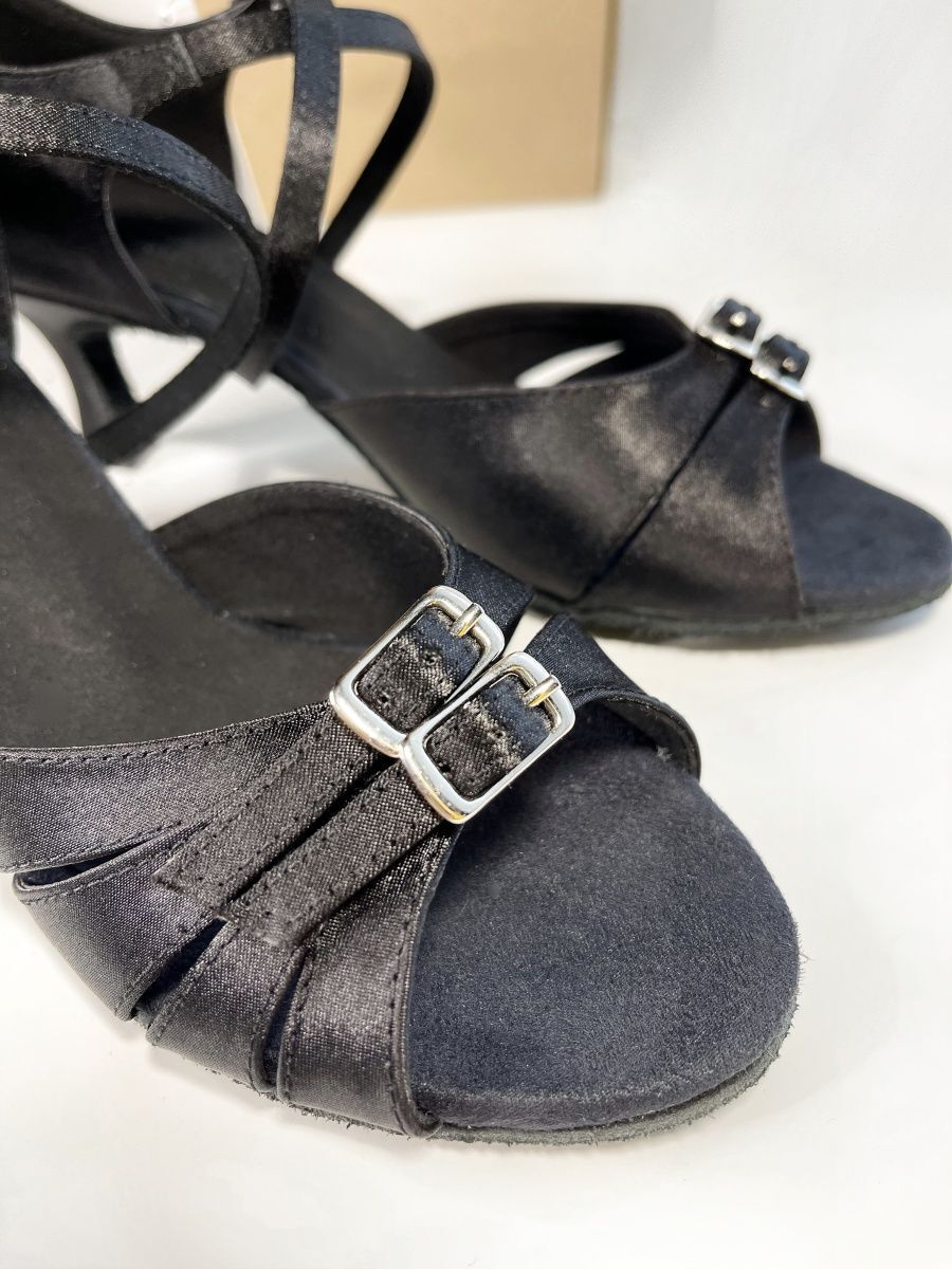 В танцевальном боксе "Dance Box" мы с заботой собрали для вас обувь от популярного российского производителя Dancemaster (Дансмастер), отвечающую всем установленным требованиям. Туфли для танцев категории "Латина" обеспечивают максимально комфортную, безопасную работу стопы танцовщика. Супинатор в таких моделях короткий, за счет чего очень удобно красиво выгибать стопу и тянуть подъем. Натуральная спилковая кожа обеспечивает хорошую гибкость подошвы и надежное сцепление с паркетом, позволяет гармонично выполнять перенос тела. Каблук-клеш 7 см хорошо подходит для сохранения баланса на протяжении всего выступления. Модель с ремешками дает возможность регулировать объем по ножке. Рейтинговые танцевальные туфли выполнены полностью из кожи, вверх обуви-сатин. Сатин переливается, что особенно смотрится эффектно во время движения танцора. Достигай побед! Начни прямо сейчас!ОБРАЩАЕМ ВНИМАНИЕ! ПРИ ЗАКАЗЕ ОБУВИ НА ВЫСОКОМ КАБЛУКЕ, НОГА МОЖЕТ "СПОЛЗАТЬ" ВПЕРЕД И ТЕМ САМЫМ РЕКОМЕНДУЕМ ПОДБИРАТЬ РАЗМЕР С УЧЕТОМ ЭТОГО ФАКТА. ВКЛАДЫШ ПОД ПЛЮСНУ ПОМОЖЕТ ПРИ ФИКСАЦИИ СТОПЫ И РЕГУЛИРОВКЕ ПОЛНОТЫ.